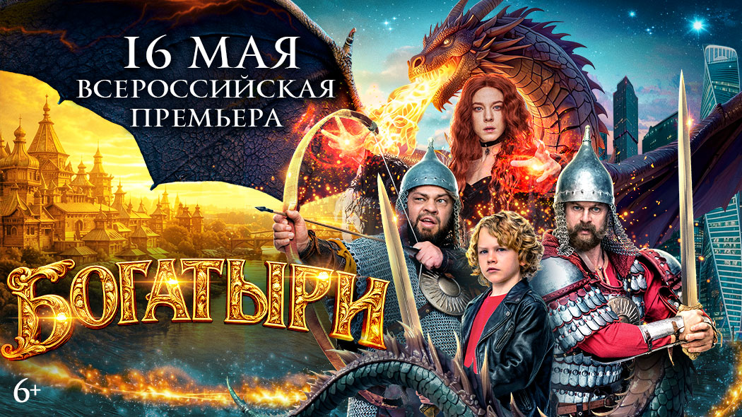 16 мая сеть кинотеатров «Синема Парк» и «Формула кино» приглашает на всероссийскую премьеру комедийной истории о героях древнерусских сказаний и былин, оказавшихся в современной Москве, – «Богатыри».