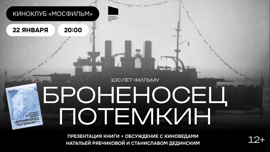 22 января кинотеатр «Синема Парк Мосфильм» отмечает 100-летие фундаментальной картины для советского киноавангарда 1920-х годов. Также релиз приурочен к выходу книги «История постановки фильма «Броненосец “Потемкин”» Вениамина Вишневского от издательства «Киноартель 1895». Фильм представят и обсудят редакторы книги, историки кино Наталья Рябчикова и Станислав Дединский.