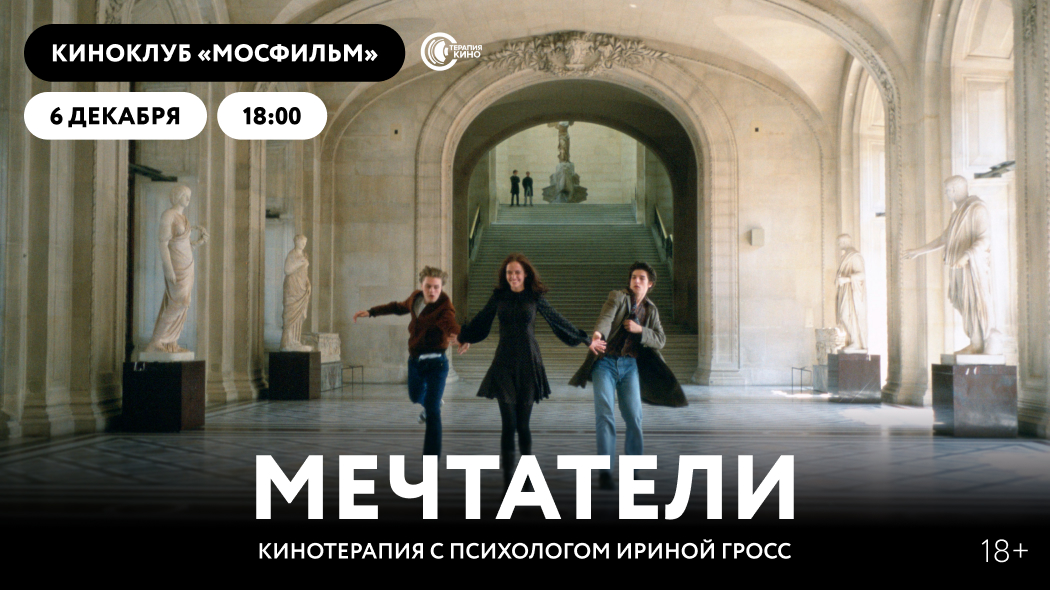 6 декабря кинотеатр «Синема Парк Мосфильм» приглашает на очередной сеанс кинотерапии с постоянным спикером нашего кинотеатра, психологом Ириной Гросс. Вместе мы разберём классическую синефильскую драму Бернардо Бертолуччи «Мечтатели».