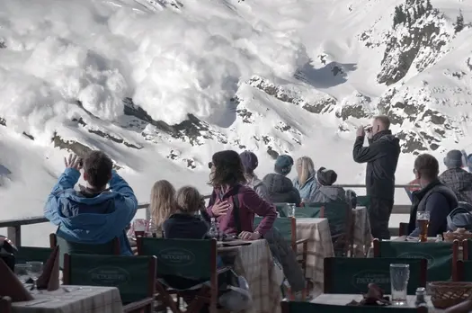Супруги Томас и Эбба вместе с двумя детьми проводят долгожданный отдых на горнолыжном курорте во Французских Альпах. Во время обеда на ресторан обрушивается лавина: Эбба самоотверженно закрывает детей собой, но Томас в панике бежит прочь. Когда выясняется, что опасность все же была мнимой, а лавина не причинила никому вреда, семье приходится столкнуться с последствиями эгоистичного поступка отца и мужа…