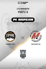 12+ спорт OLIMPBET Чемпионат России – ВХЛ. 1/4 финала. Горняк-УГМК – Металлург НК. Матч №3 210 мин