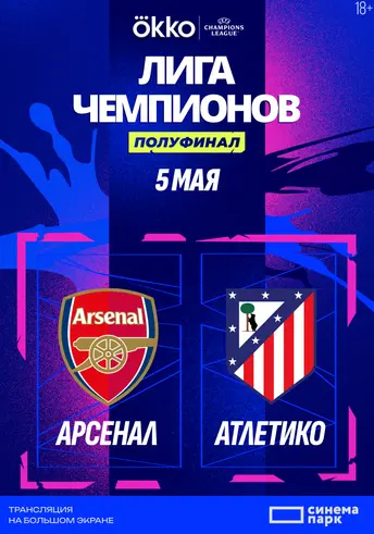 05 мая Сеть кинотеатров «Синема Парк» и «Формула Кино» приглашает на прямую трансляцию матча 1/2 финала плей-офф Лиги чемпионов УЕФА между командами «Арсенал» (Лондон) и «Атлетико» (Мадрид). Кто получит путёвку на финал в Будапеште? Бронируйте лучшие места и наслаждайтесь игрой сильнейших клубов Европы в атмосфере сектора стадиона и комфорте современного кинотеатра.
