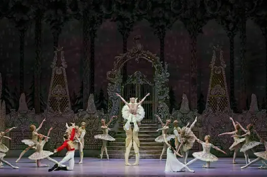Премьерная постановка «Щелкунчика» Питера Райта Королевским балетом в 1984 году получила восторженные отзывы критиков и заслуженно стала исключительным образцом актерского и хореографического мастерства. В канун Рождества чародей Дроссельмейер (Гэри Эвис) переносит маленькую девочку Клару (Франческа Хэйуард) в мир удивительных приключений, где останавливается время. В первом действии гостиная родного дома Клары превращается в поле битвы оловянных солдатиков под предводительством Щелкунчика (Александр Кэмпбелл) против мышиного войска, а во втором действии путь героев пролегает через Снежную страну в Сладкое королевство. Редкая красота и мелодичность музыки Петра Ильича Чайковского, роскошные праздничные декорации, пленительный танец актеров Королевского балета с жемчужиной балетного искусства – прелестным па-де-де Принца и Феи Драже (Федерико Бонелли и Лорен Катберсон) – все это снискало «Щелкунчику» славу лучшей в мире рождественской сказки, которая создает атмосферу настоящего праздника и предвкушения чуда.