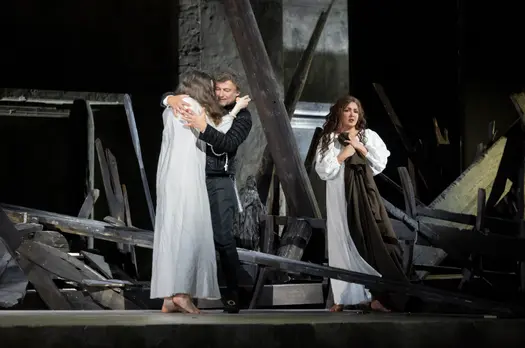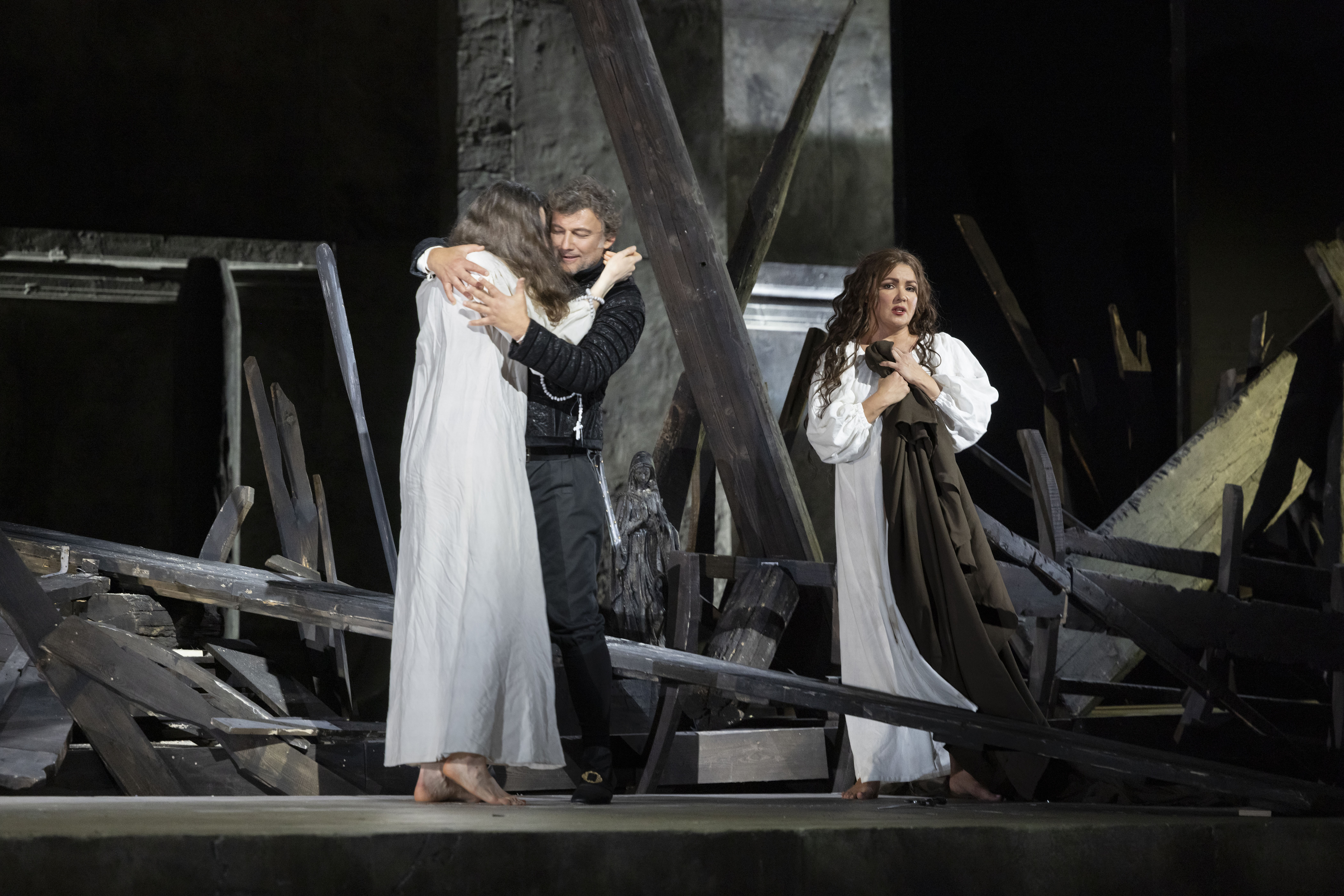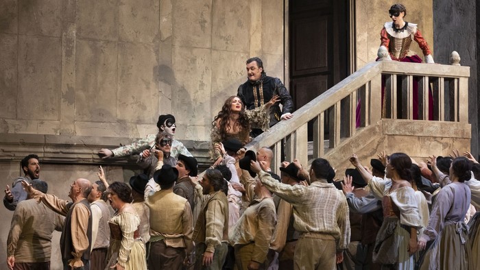 «Джоконда» Ромена Жильбера бережно трактует сюжет в его историческом контексте: действие разворачивается на фоне венецианской улицы XVII века. Опера считается одной из самых сложных для постановщика – она требует всех шести первоклассных типов голоса и потому исполняется нечасто, однако неаполитанский театр собрал особенно элегантный «хет-трик». Анна Нетребко без труда заполнила своим роскошным, чувственным, удивительно подвижным сопрано крупнейший оперный театр Европы. На том же артистическом и вокальном уровне проявил себя и баритон Людовик Тезье в роли Барнабы, превративший своего персонажа в зловещий прототип, тёмную душу многих романтических мелодрам. Йонас Кауфманн в роли Энцо по-прежнему блистает великолепной харизмой, техникой и неповторимым тембром.
