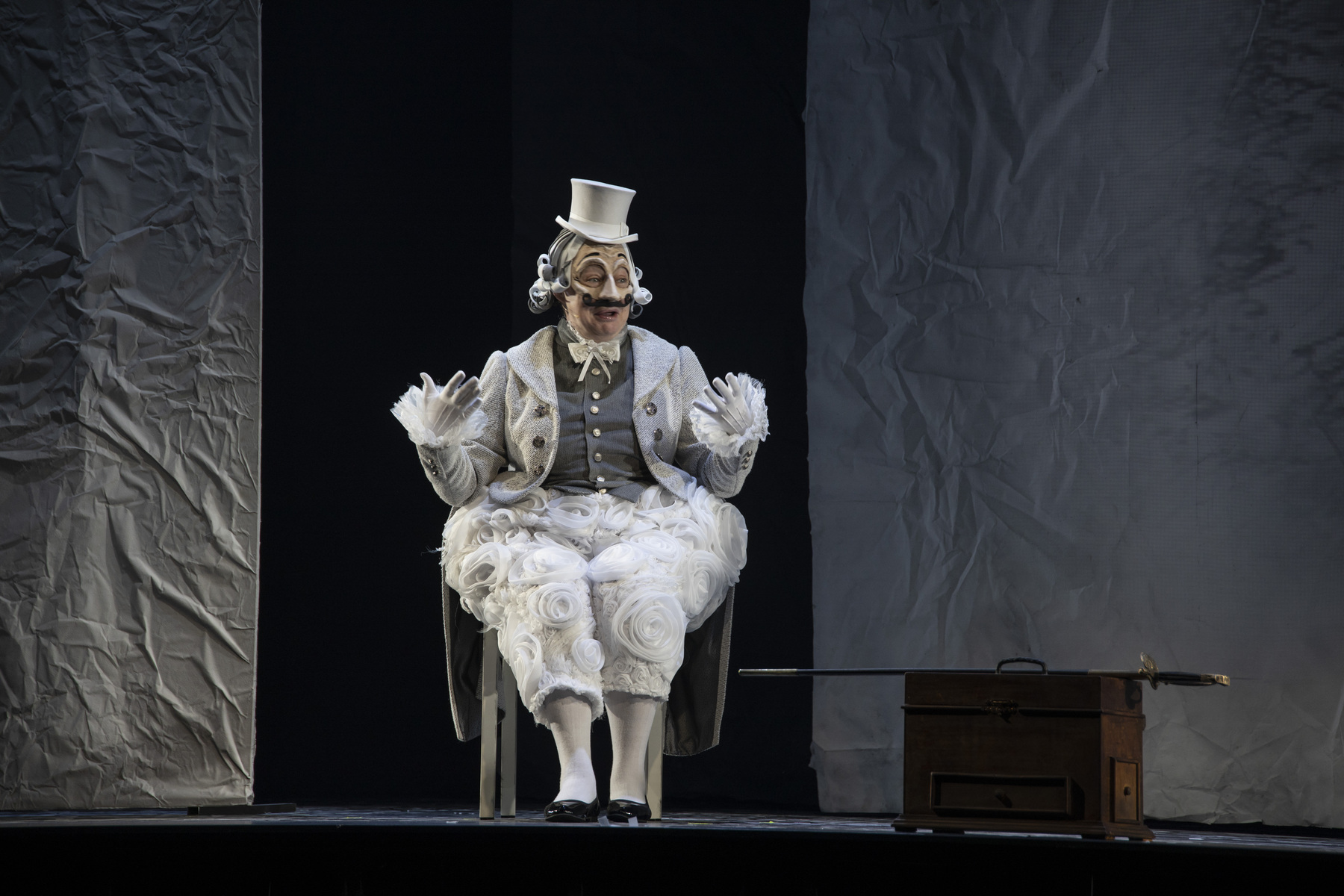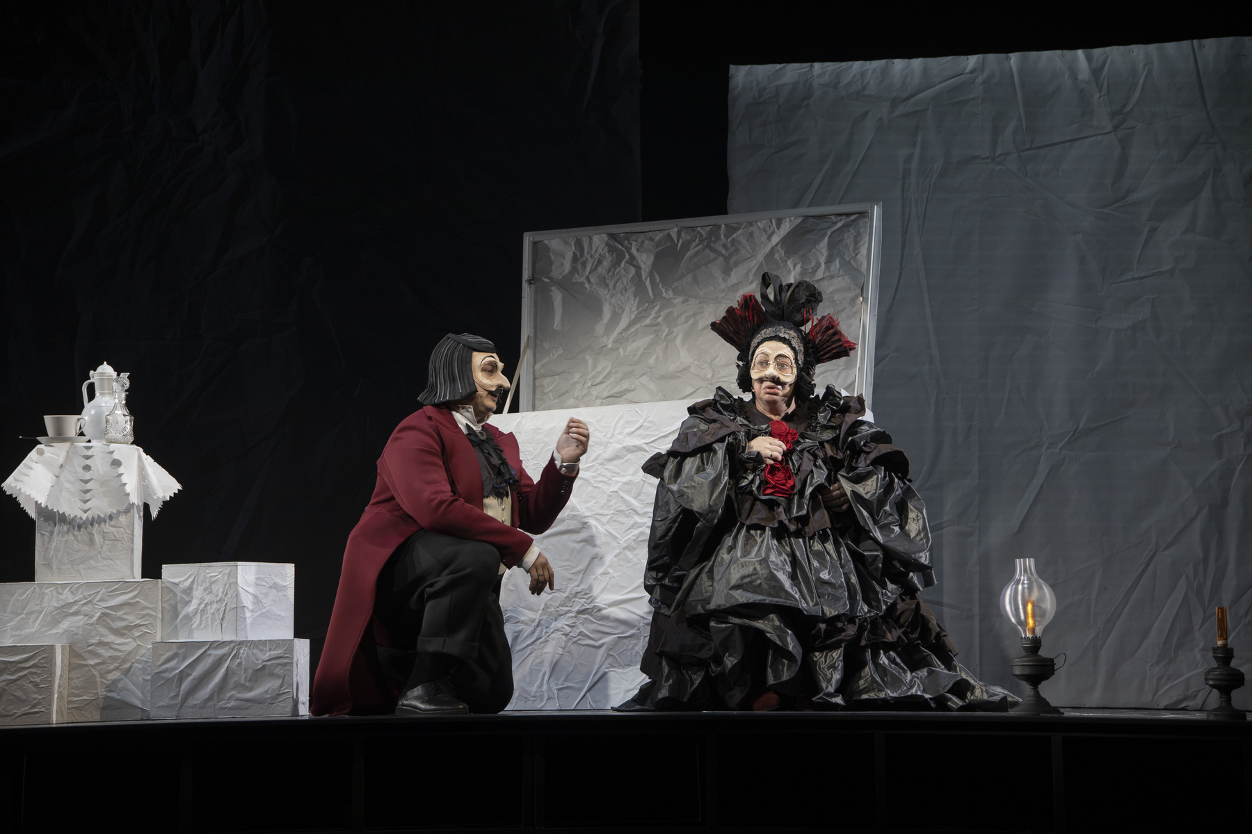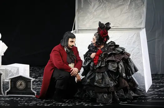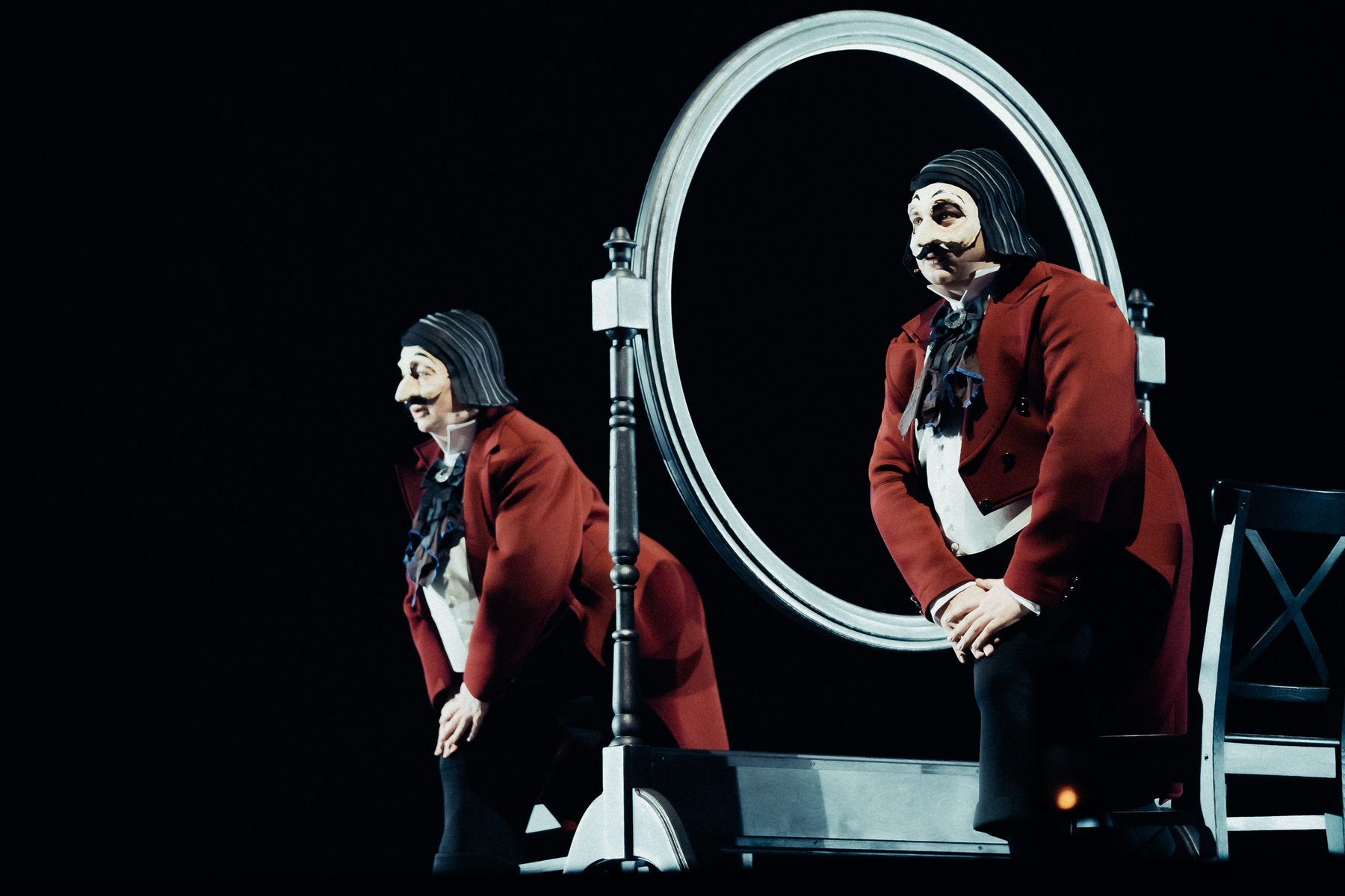 Постановка по одноимённой поэме Николая Гоголя выполнена в жанре «галопада» – стремительного и головокружительного бального танца, отражающего хаос и утрату нравственных ориентиров в обществе. Действие, сосредоточенное на формировании главного героя, Павла Ивановича Чичикова, начиная с его детства и заканчивая путешествием по российским губерниям, разыграно блестящим актёрским дуэтом, отмеченным премией «Хрустальная Турандот», – Марией Ароновой и Владиславом Гандрабурой. Галопад (от французского galopade) – бальный танец в быстром темпе, впервые в России упомянут в «Правилах для благородных общественных танцев» в 1825 году. Описание галопада в поэме Гоголя создает ощущение несущейся в невероятном вихре жизни, потерявшей надёжную точку опоры.