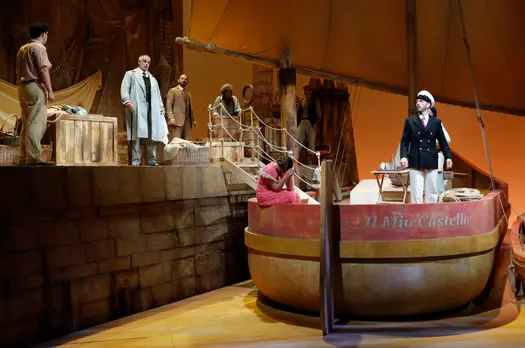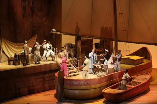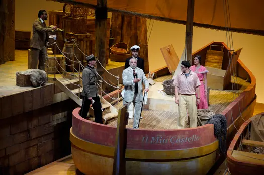 Раритетный россиниевский фарс в интерпретации знаменитого режиссёрского дуэта Barbe & DoucetЕсть несколько действительно малоизвестных опер Россини, и «Синьор Брускино» – одна из них. Это едва ли опера вообще – одноактный фарс, длящийся около часа с четвертью, визуальный пир и море смеха, полный искромётной музыки и запоминающихся мелодий, беззаботного веселья, любовных свиданий, переодеваний и аккуратно выписанных стереотипных персонажей.К тому времени, как Россини написал «Брускино» в возрасте двадцати лет для театра San Moise в Венеции, у него уже было несколько хитов в этом жанре и твёрдое понимание, как угодить публике и «подколоть» критиков. Чего стоит скандальный фрагмент, где вторые скрипки отстукивают смычками такт на пюпитрах. Возмутительно! Сегодня же этот искристый россиниевский пассаж очень популярен и любим публикой.Постановщики Андре Барб и Рено Дусе перенесли действие в начало XX века на судно под названием Il mio castello («Мой замок»), где Гауденцио (отец влюблённой девушки) – капитан. Такая необычная обстановка обеспечивает уютную ламповую атмосферу и допускает забавные мелочи (например, прожектор, мигающий на названии судна каждый раз, когда кто-то упоминает замок героя). Гауденцио, пожилой мужчина, жаждущий молодых женщин, обладает привлекательными и элегантными чертами Джорджо Каодуро – бывшего ученика Россиниевской академии, а сегодня одного из лучших колоратурных баритонов в мире. Его партнёр по сцене – любимец зрителей Пьетро Спаньоли в роли «доверчивого» отца – сварливого, нетерпеливого, раздражительного персонажа.«Синьор Брускино» – чудесная искромётная комедия о девушке, которая хочет выйти замуж, но чей опекун этому препятствует, о соперничест…