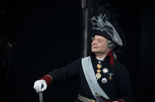 Режиссёр Наталья Ковалёва поставила спектакль по собственной сценической версии, созданной на базе произведений Дмитрия Мережковского и Евгения Симонова, дополнив их сценами собственного сочинения – воображаемой встречи императора с матерью, Екатериной II. В роли «русского Гамлета» – заслуженный артист РФ Александр Олешко. Декорации и костюмы выполнены по эскизам главного художника Вахтанговского театра Максима Обрезкова. Режиссёр Наталья Ковалёва: История Павла I – очень русская история, бурная, противоречивая. Личность его – человека неординарного, любознательного, образованного, остроумного, способного к поэтической импровизации и при этом болезненно самолюбивого, нервного – не может оставить равнодушным… Кто-то говорит о нём «идиот», а кто-то называет «гением».