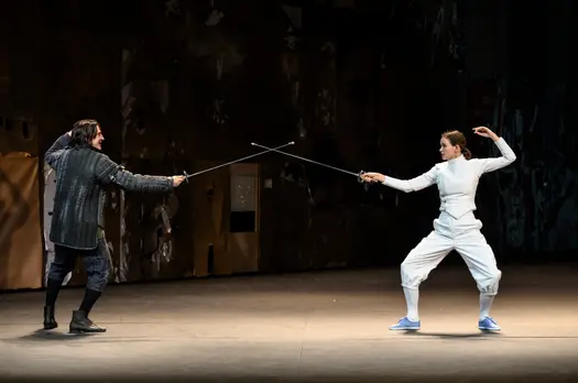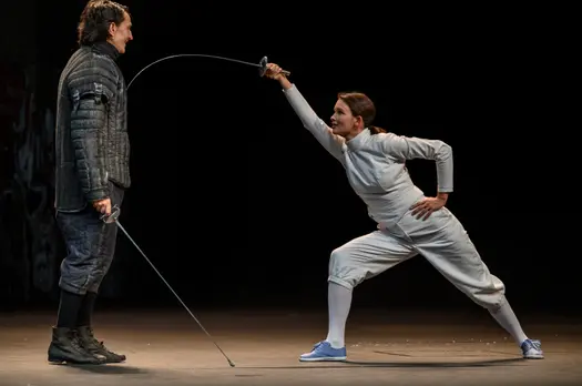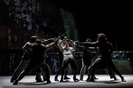 Постановка знаменитой пьесы на сцене МХТ – разговор о поэтическом восприятии реальности в сегодняшнем, таком циничном мире. Мире, который наполнен страхом эпидемии, ежеминутного проявления несправедливости или агрессии. Егор Перегудов: ««Сирано де Бержерак» – это пьеса, в которой люди решают свои проблемы при помощи шпаги, поэтому у нас на сцене фехтуют. Но важно понимать, что Ростан писал своего «Сирано» через двести лет после жизни его реального прототипа, это XVII век, придуманный в конце века XIX, романтически преломленная реальность. И это даёт нам право, пользуясь теми правилами игры, что заложены драматургом, тоже сочинять свой мир, заново перепридумывать его. Мы берём историческое фехтование и размышляем, что такое фехтование сегодня, в XXI веке».