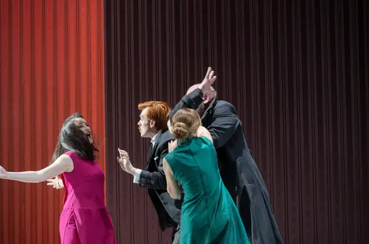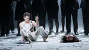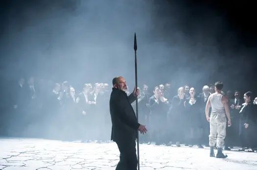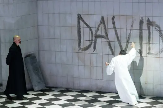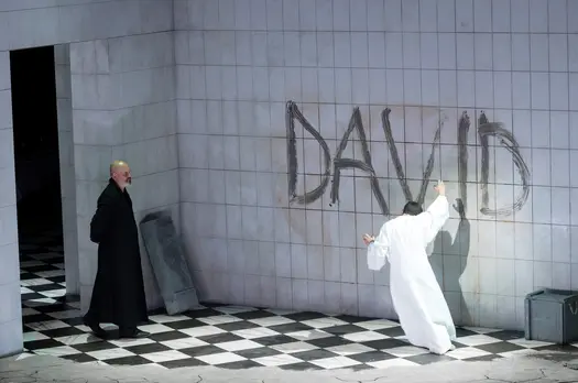 Умопомрачения и судороги власти, или Больная совесть царейСтрашные муки полубезумного царя Саула так искусно и самозабвенно переданы Флорианом Бёшем, что мы начинаем сочувствовать этому «тирану и сумасброду». Актёрское совершенство певца делает его работу сценическим шедевром. Но рядом с ним и четверо «молодёжных» персонажей в утончённых, отшлифованных интерпретациях оказываются не достойным фоном, но уверенным противовесом мучающемуся злодею. Тем более что и юный герой Давид, став царём, не гнушается убийством и, как по наваждению, начинает мучиться уязвлённой совестью.Для немецкого режиссера Клауса Гута любая самая старинная, обросшая легендами история без труда находит себе место внутри переплетений судеб из дня сегодняшнего. Иудейский царь Саул уже немолод и потерял свою былую силу. Юный пастух Давид ударом из пращи убивает великана Голиафа и приносит иудеям победу. Рождается новый герой – и это повергает Саула в ужас и в ярость. Тем более что этот Давид еще и похож статью и энергетикой на знаменитого флорентийского микеланджеловского супергероя – английский контратенор Джейк Ардитти поёт нежно, по-английски, но актёрски создает поначалу мощный образ цельного, пышущего позитивом, просветлённого праведника. К нему тянутся дети Саула, тянутся и духовно, и чувственно – один из эпизодов спектакля являет нам любовный квартет в тесном телесном переплетении. Царевич-джентльмен Ионафан (Руперт Чарлзуорт), полная сладострастия и высокомерия Мерова (Анна Прохазка) и «тургеневская барышня» Мелхола (Джулия Семенцато) как будто бы ищут в эротическом соединении с Давидом просветления и экстаза. Хор, играющий в этой оратории важную роль (яростно отдающийся действию Хор имени Арнольд…