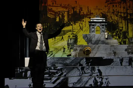 Кукольное путешествие через весь ХХ век. В главной роли – Евгений ЦыгановНа фоне кадров исторической кинохроники и рисунков Сергея Образцова оживают в куклах легенды театра и кино: Любовь Орлова и Лидия Русланова, Чарли Чаплин и Леонид Утесов, Соломон Михоэлс и Федор Шаляпин, а также другие исторические знаменитости. В основе спектакля – автобиографическая книга С.В. Образцова «По ступенькам памяти».Как складывалась история жизни великого кукольника, прожившего весь ХХ век, создателя крупнейшего в мире театра кукол? Создатели спектакля «Я – Сергей Образцов» раскрывают занавес времени и представляют жизнь гения как портрет на фоне эпохи, эпичное и одновременно исповедально-лирическое путешествие по ступенькам памяти. Необыкновенная жизнь рассказана простыми обыкновенными словами, эпизодами будней: первая кукла, первая любовь, первые творческие опыты и гастроли… Создание театра, годы войны и День Победы, репетиции и премьеры, юбилейный вечер народного артиста СССР и любимая песня мамы… Евгений Цыганов в роли гения ХХ века не только преображается сам, но своей игрой меняет реальность, позволяя зрителям путешествовать и во времени, и в жизни, в чувствах и мыслях Образцова. Герой рассказывает о театре и людях, о приметах быта и сменах эпох, а перед зрителями – подчас с улыбкой, подчас до слёз – раскрывается история становления души художника. Портретные куклы самых ярких актёров и знаменитостей играют на фоне обобщённых декораций – лестницы-подиума из белоснежных ступеней. Куклы становятся метафорами человеческих страстей, век и человек соединяются, а великий Сергей Образцов становится собеседником сегодняшних зрителей.