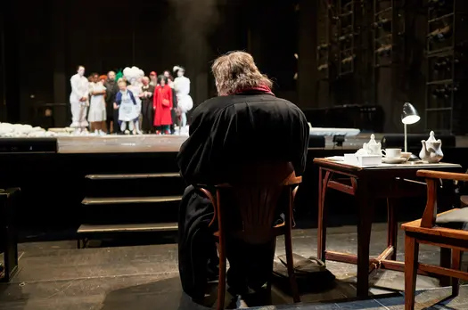 Сюжет – последнее, что интересует в спектаклях Дмитрия Крымова, как зрителя, так и его самого. Вместо «Дон Жуана» здесь могло быть любое название из мирового репертуара. «Генеральная репетиция» как форма жизни художника – это и есть сюжет.Спектакль Дмитрия Крымова – масштабный, размашистый, громкий – о том, что для человека театра нет зазора между реальностями. Репетиция – это то, что происходит в голове перманентно, вне зависимости от его воли. - журнал «Театр», блог В образе замурованного в толщинки и маску, изменившего голос, походку и все свое естество Евгения Цыганова разом угадываются и Федерико Феллини, и Георгий Товстоногов, и Андрей Гончаров, и любой стареющий гений на ваш вкус (очевидно, что за собирательным портретом прячется и альтер эго самого Крымова). Не зная заранее, что в спектакле задействован Цыганов, этого можно никогда не понять: актер перевоплотился до совершенной неузнаваемости, и есть подозрение, что это одна из лучших его ролей.- интернет-издание «Afisha Daily»