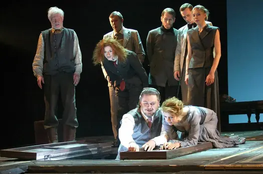 Режиссер Владимир Мирзоев, как правило, выбирает пьесы, которые начинают вибрировать в унисон с музыкой времени. Почему это происходит сейчас с чеховским «Вишневым садом»? Возможно потому, что это – пьеса обвала, трагикомического финала, когда прошлая эпоха и сросшиеся с ней люди вынуждены сойти со сцены, торопливо сбежать на цыпочках. А кто займет их место – ещё непонятно, впереди туман. Начало 21- го века смотрится в начало 20-го, как в старинное зеркало: бесчисленные рифмы, странные сближения, страхи, пророчества. Но история не повторяется буквально. Ясно пока только одно: мы находимся внутри потока, который летит с обрыва вниз и потому неуправляем, а значит – трансформация общества неизбежна.